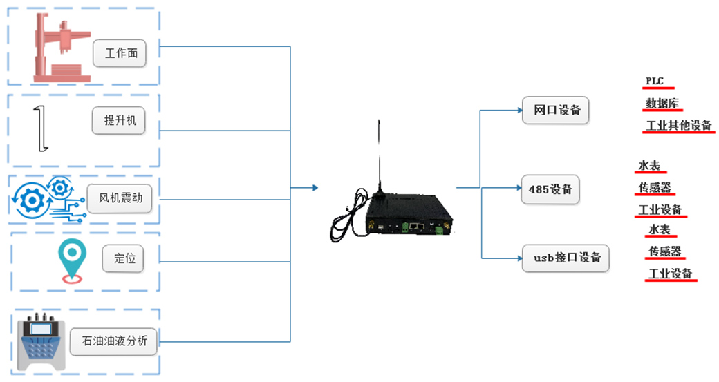 相关联的工业现场设备需具有RS485,RJ45接口,支持本地有线网络通信和无线4G传输,无线4G需配套SIM卡使用。